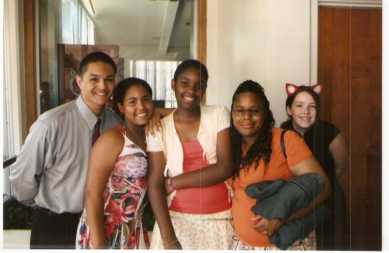 This is from last summer. I'm in a program called Upward Bound where I was able to live in a college dorm room and experience the college life by attending classes. This is before we went to a play and then to dinner. I'm the one with the braids wearing the orange shirt.